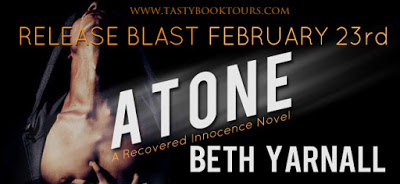 Atone is the second book in the Recovered Innocence series, it could really be work fine as a standalone though. I actually did read Vindicate, the first book in the series, and I do believe overall I enjoyed Atone just a tad bit more.